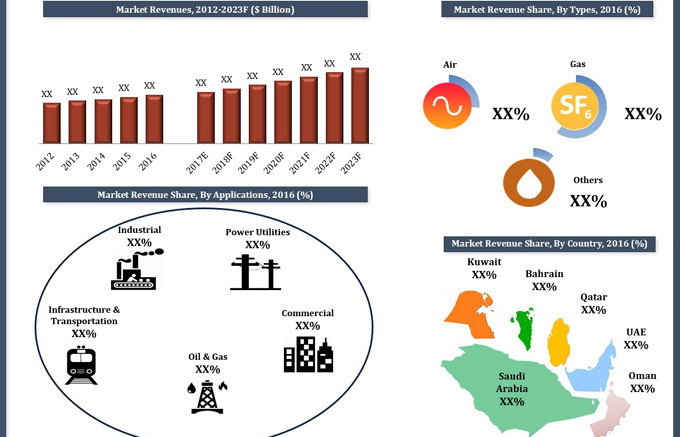 “GCC Medium Voltage Switchgear Market (2017–2023)” report provides in-depth analysis with 185 figures and 13 tables covered in more than 230 pages. The report estimates and forecast the overall GCC Medium Voltage Switchgear Market by insulation, application and country. The report also gives the insights on competitive landscape, companies benchmarking, company profiles, market drivers and restraints.