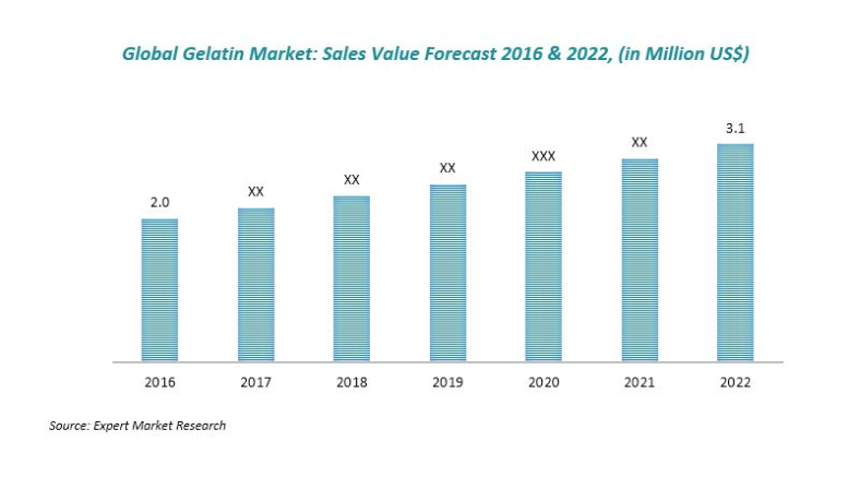 According to a new report by Expert Market Research, the global gelatin market reached a value of US$ 2 Million in 2016 and is further expected to reach a value of US$ 3.1 Million by 2022. Some of the growth inducing factors include aging population, rising disposable incomes, health conscious consumers and growth of the end-use industries.