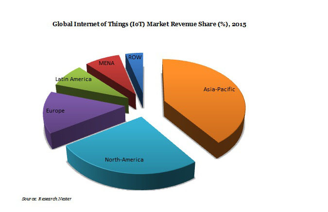 The Asia-Pacific region accounted the maximum revenue share in 2015 and it is expected to dominate the overall market of internet of things across the globe during the forecast period i.e. 2016-2023. Rapid pace in urbanizations and availability of low cost data services are propelling the demand for internet of things enabled devices. Rising tech savvy population across the region and increasing government initiatives to adopt advanced technology in emerging nations such as India and China are some of the key factors which are swelling the growth of internet of things market.