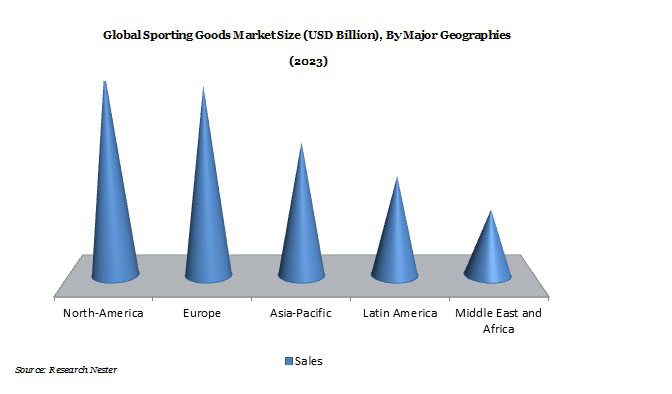 Regionally, the sporting goods market is segmented into North America, Europe, Asia-Pacific and Rest of World (ROW). Among these, North-America is anticipated to witness a significant growth and occupy the largest share of the sporting goods market by 2023.