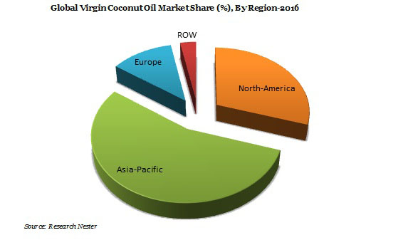 Asia Pacific accounted the largest revenue share in virgin coconut oil market globally and is estimated to be the dominant region in virgin coconut oil market during the forecast period i.e. 2016-2023. The region is the largest producer and exporter of virgin coconut oil to other geographical zones.