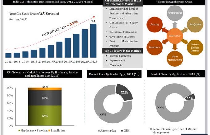 According to 6Wresearch, India Commercial Vehicles Telematics Market installed base is projected to reach 1.4 million by 2022. Increasing road accidents, security concerns and need for fleet management are driving the adoption of telematics solutions in the country. Additionally, benefits such as reducing fuel consumption and repair costs would further spur the growth of the market.