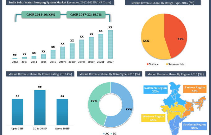 “India Solar Water Pumping System Market (2017–2022)” provides in-depth analysis with 29 figures and 5 tables covered in more than 90 pages. The report estimates and forecast overall India solar water pumping system market by revenues, volume, power rating, design type, drive type, applications and regions. The report also gives the insights on competitive landscape, companies benchmarking, company profiles, market drivers and restraints.