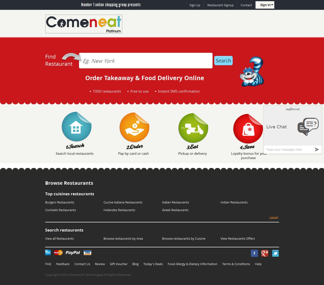 Comeneat is a professional PHP Script to order your delicious foods through online. Online food ordering or booking table is a trend which changes your dinning table as a feast. Roamsoft Technologies is providing a clone script of Just-eat, Eat24hours, etc with more key features like PayPal integration, Invoice generation, SMS integration, etc. This Script has an intuitive interface with the latest technology code to make interaction easier. Customer’s can order their desired foods from preferred cuisine. Inbuilt search option helps to grab cuisines in and around your locality and make to taste foreign dish from your table through online order. Social media plugin keeps you update with your desired cuisines.